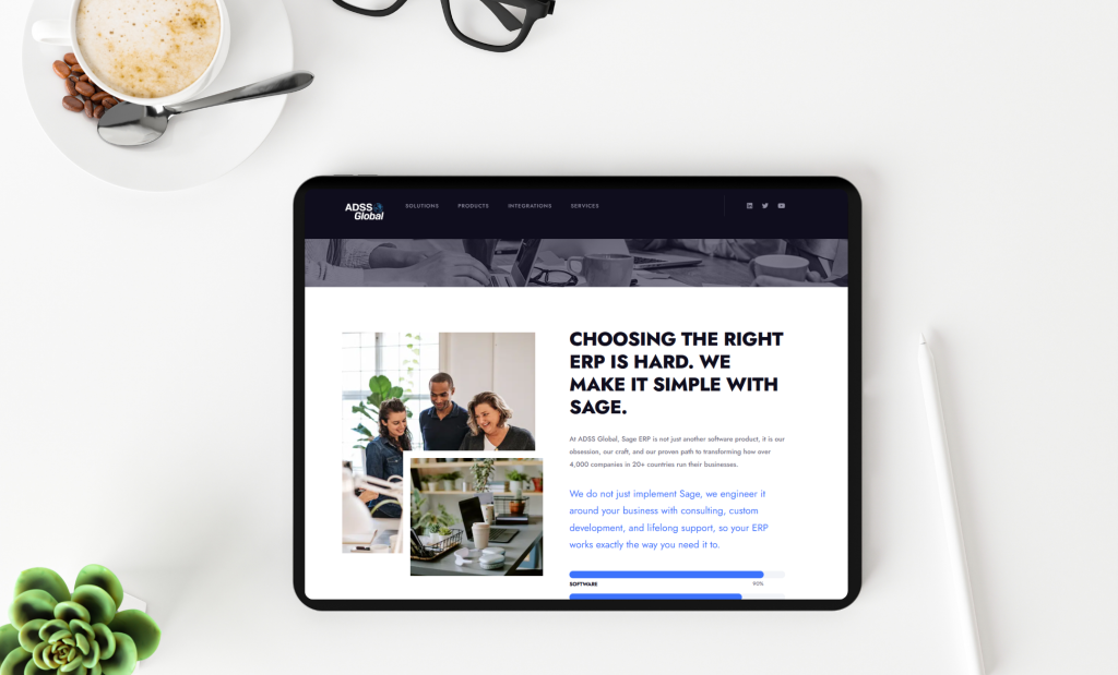 ADSS Global is one of the leading providers of Sage 300 and Sage Intacct solutions across North America. To strengthen its brand presence and improve discoverability, ADSS Global needed to consolidate its U.S. and Canadian websites into one unified global platform. The goal was to create a seamless online experience, optimize for search visibility, and establish a cohesive brand identity across digital and offline channels.